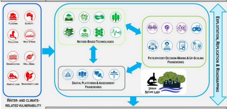 Estas ciudades abordarán el clima urbano identificado, así como los cambios relacionados con el agua, mediante la creación conjunta de SBN con las partes interesadas y usuarios finales utilizando una innovadora herramienta sistémica de apoyo a la toma de decisiones. Con objeto de garantizar su reproducibilidad, estas SBN se unirán a modelos comerciales innovadores y rentables. Además, las directrices innovadoras del gobierno municipal y los programas de toma de decisiones que permitan la implementación de las SBN se pondrán a prueba en las ciudades punteras.