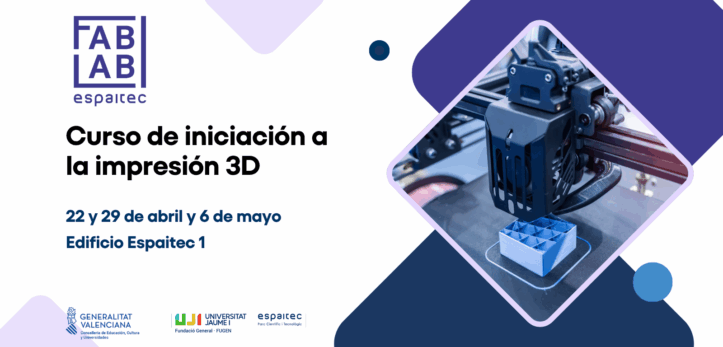 El FabLab de Espaitec, el laboratorio de prototipado de la Universitat Jaume I, organiza un curso de impresión 3D los días 22 y 29 de abril y 6 de mayo. Las sesiones serán de 15.00 a 18.00 horas en Espaitec 1 en la sala de formación impresión 3D del Fablab (UA1017SD).